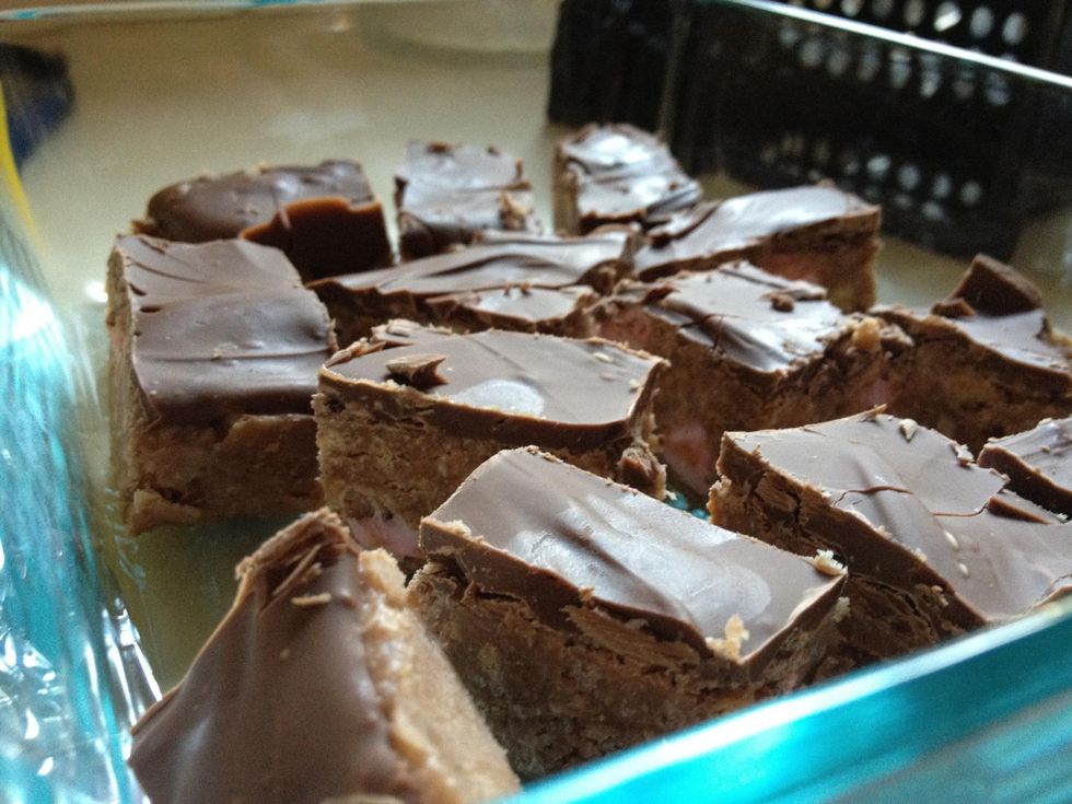 Spread the melted chocolate all over the top of the slice and return to the fridge for an hour or two (or longer)