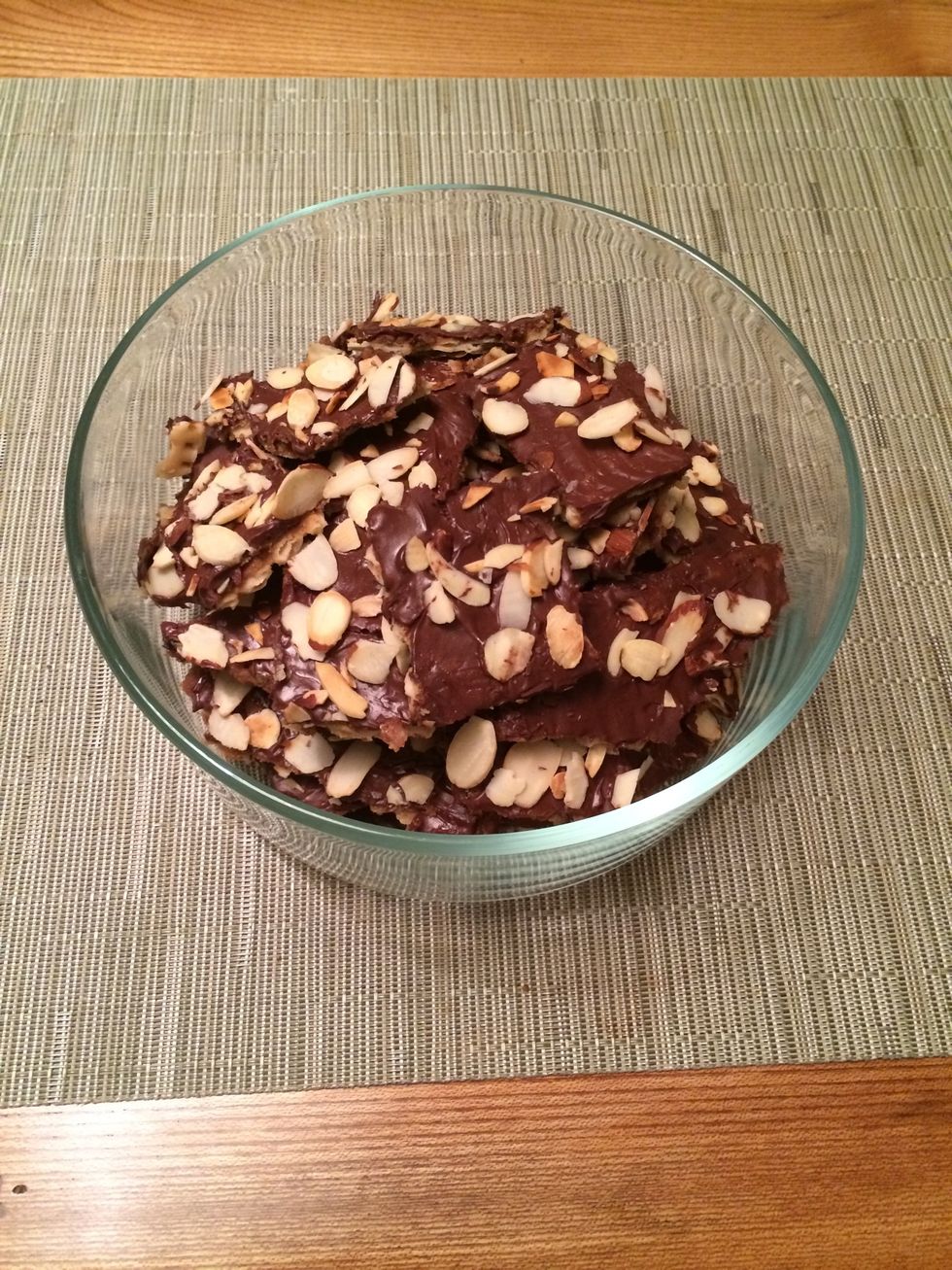 Break into pieces. The matzoh crunch can be stored in an airtight container for a week.