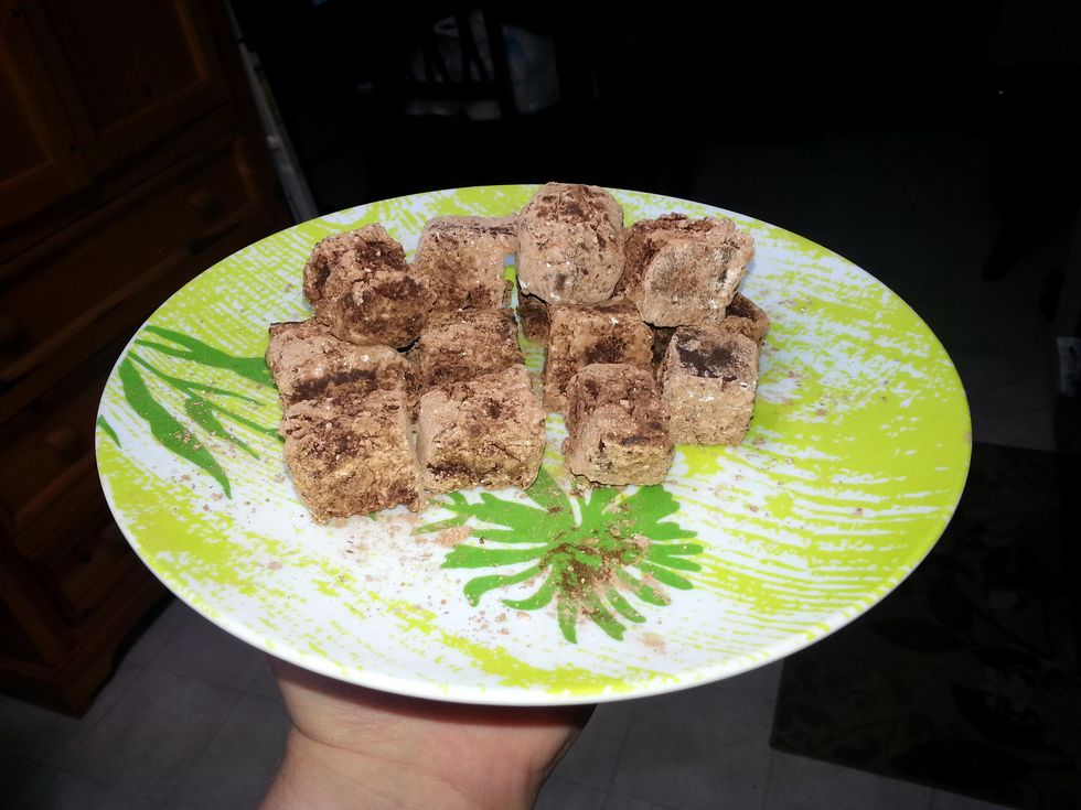 (For rolling) Mix the confectioner's sugar and cocoa powder together, and roll the mochi in the mixture before wrapping with wax/parchment paper. And you're done. Enjoy!