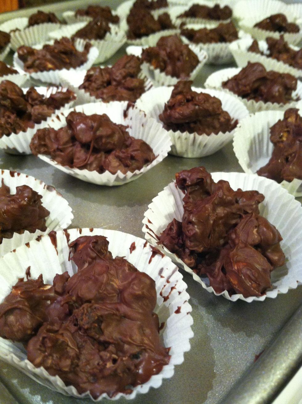 I chose to put my clusters in little cupcake liners to make it easier. So put some little paper liners on a baking tray.