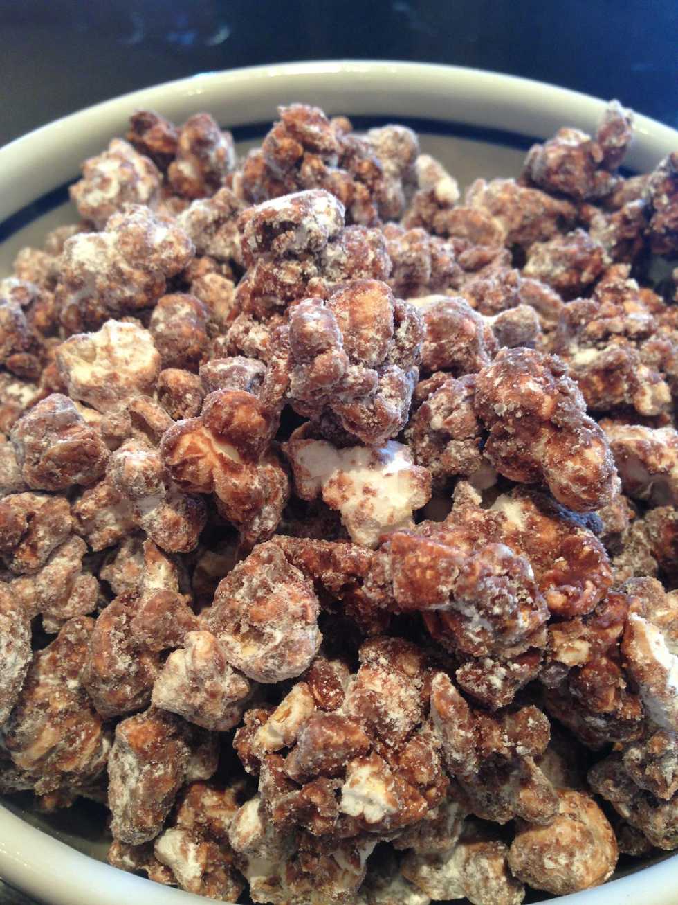 First, start by popping 8 cups worth of popcorn (preferably plain popcorn). Then set aside.