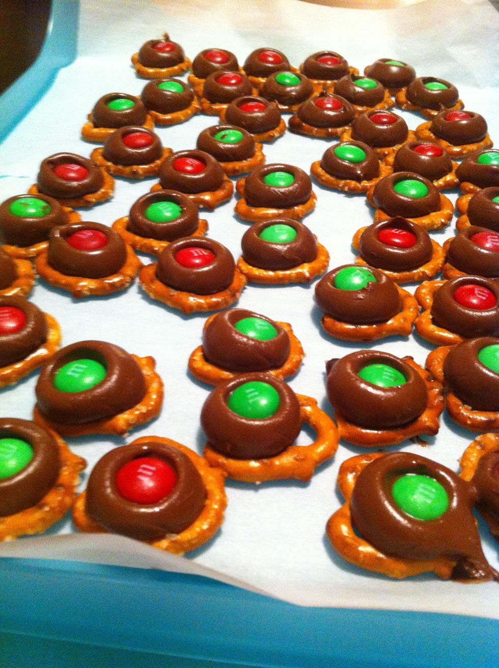 Place kisses on pretzels evenly then Put in the oven for 4 minutes