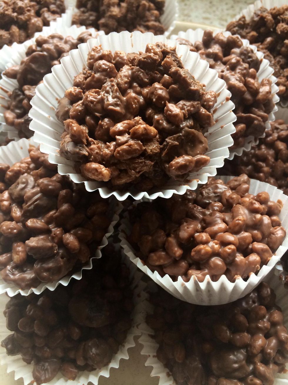 Mix well until all the rice crispies and sultanas are coated in the chocolate.