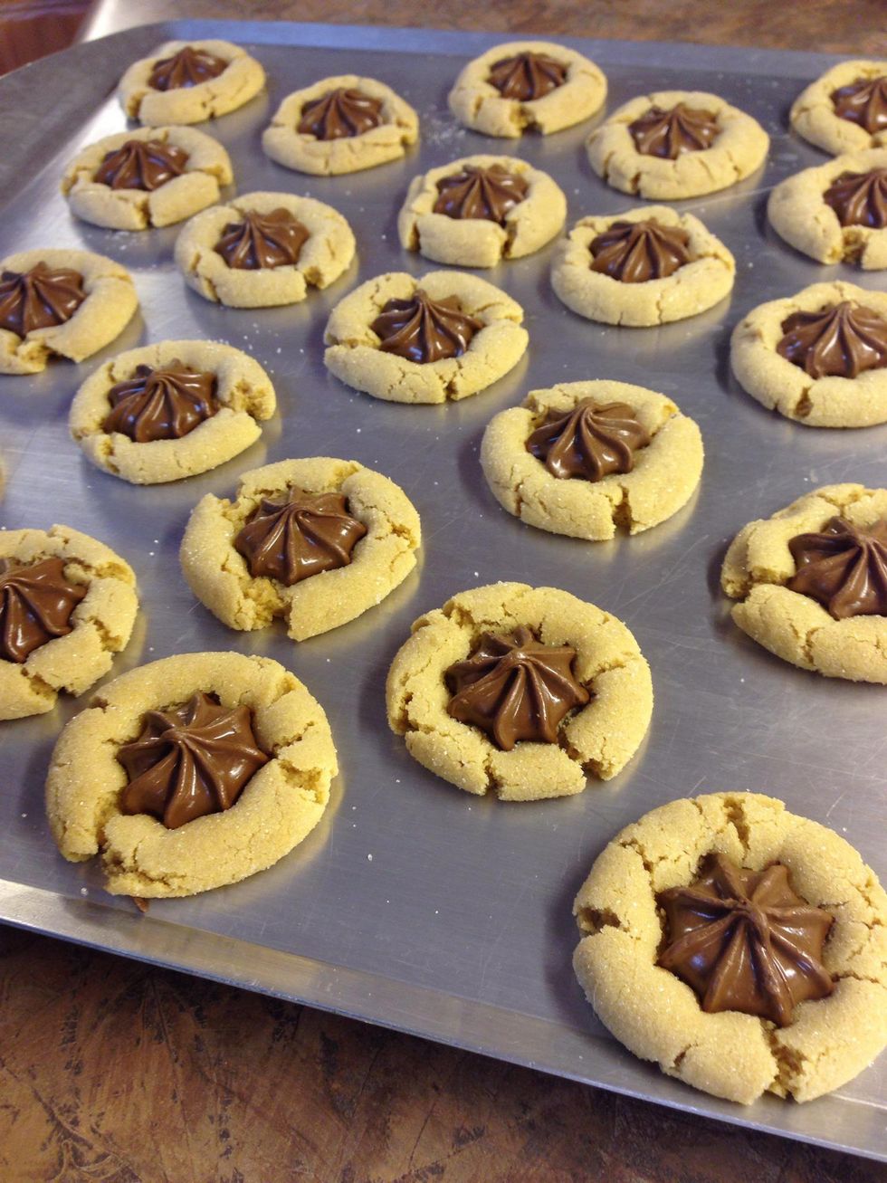 Crisp outside, soft inside.... Peanut butter and chocolate combination make these very popular cookies. They freeze well too.