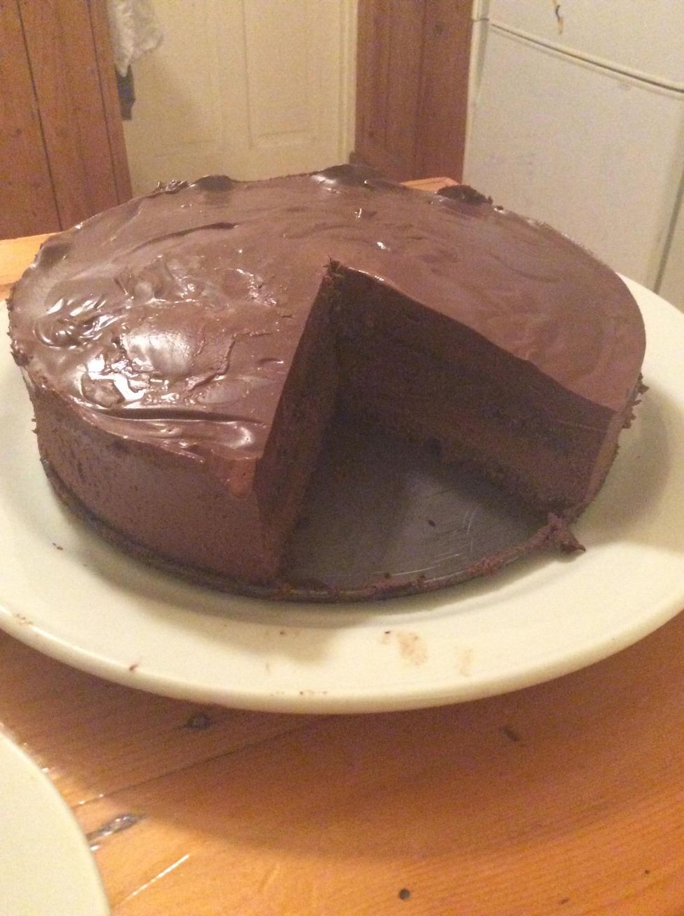 After 30 minutes, take truffle filling out of fridge and get ready to assemble the cake.