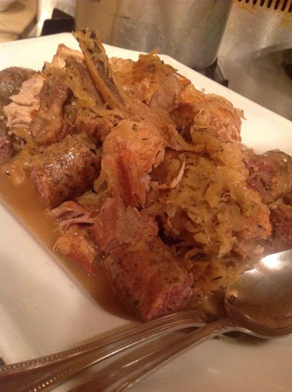 Put meat back into roasting pan and bring to a simmer