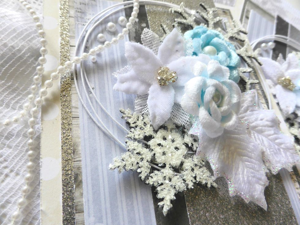 Once the papers are all stuck together attach a circle of white wire trim to the upper portion of the cards