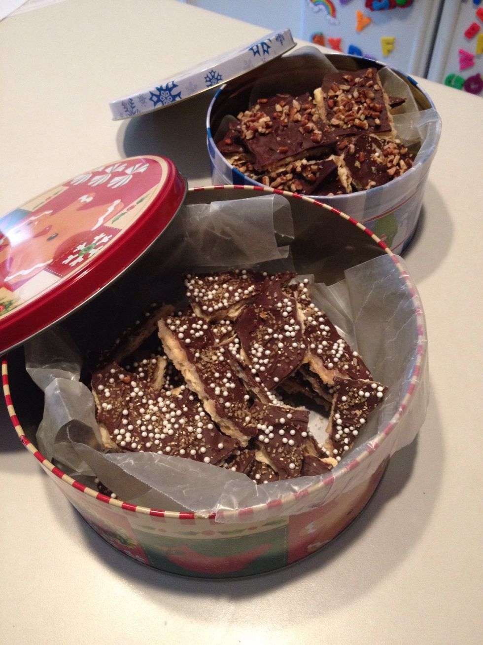 Pour mixture evenly over crackers.