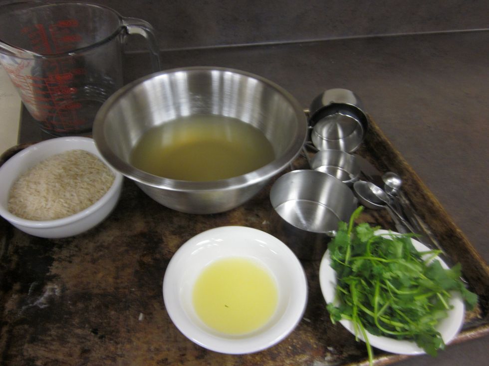 bring rice and chicken stock + 1 tablespoon of lime juice to a boil