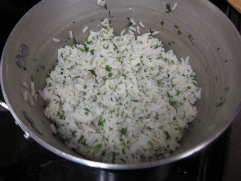 once cooked remove from heat and add lime juice, cilantro,and salt use a fork to fluff the rice