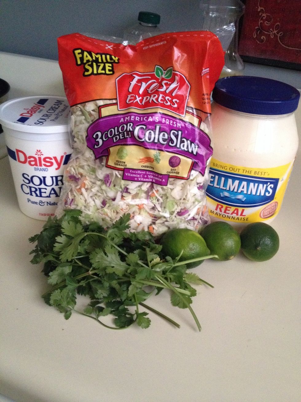 Place about 3 cups of slaw into bowl and mix.