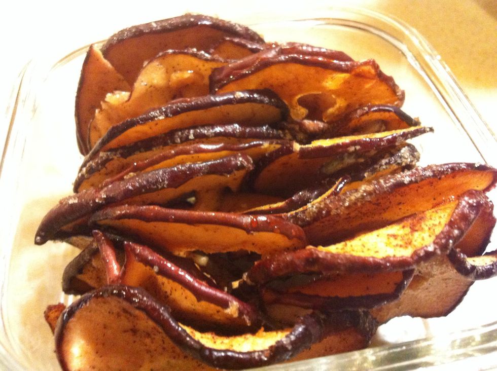 Bake at 200 degrees for 1 hour then flip the slices over and bake for another hour. The slices should be crispy, but if they need more time, turn off the oven and leave the chips inside as it cools.