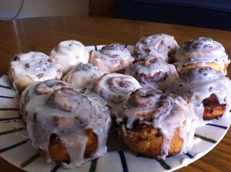 🕔 Take the cinnamon buns out of the oven when finished! Mmmm! You can easily tell which ones were at the end of the roll 😅