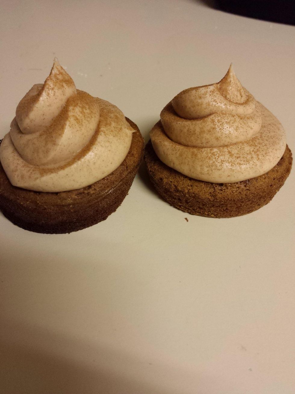 I then piped the icing onto little gingerbread cupcakes. Topped with more cinnamon for decoration.