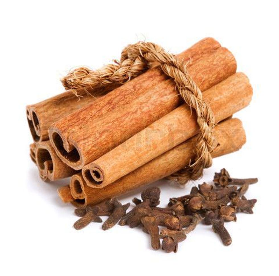 Crush the two inches of cinnamon stick and the six cloves in the mortar and pistol or with a rolling pin. This is what it should look like.