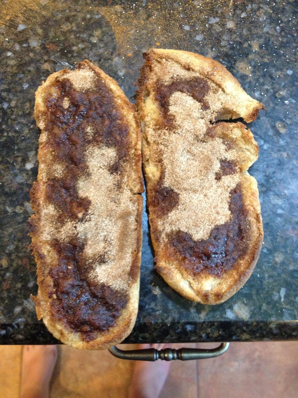 When out of the toaster, cinnamon and sugar should have boiled and they will cool and former crust