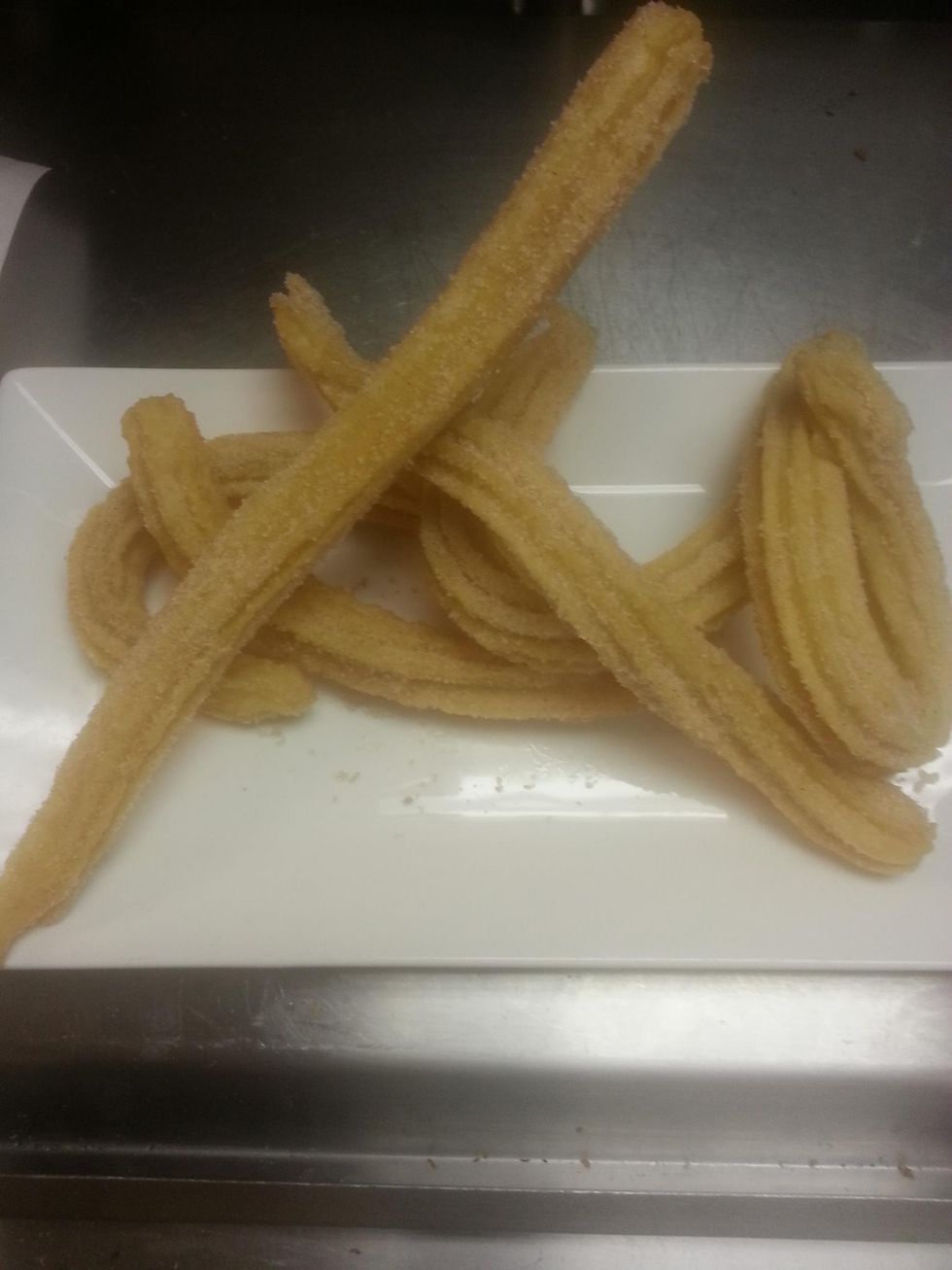 Now we add the churros to coat with the sugar mixture