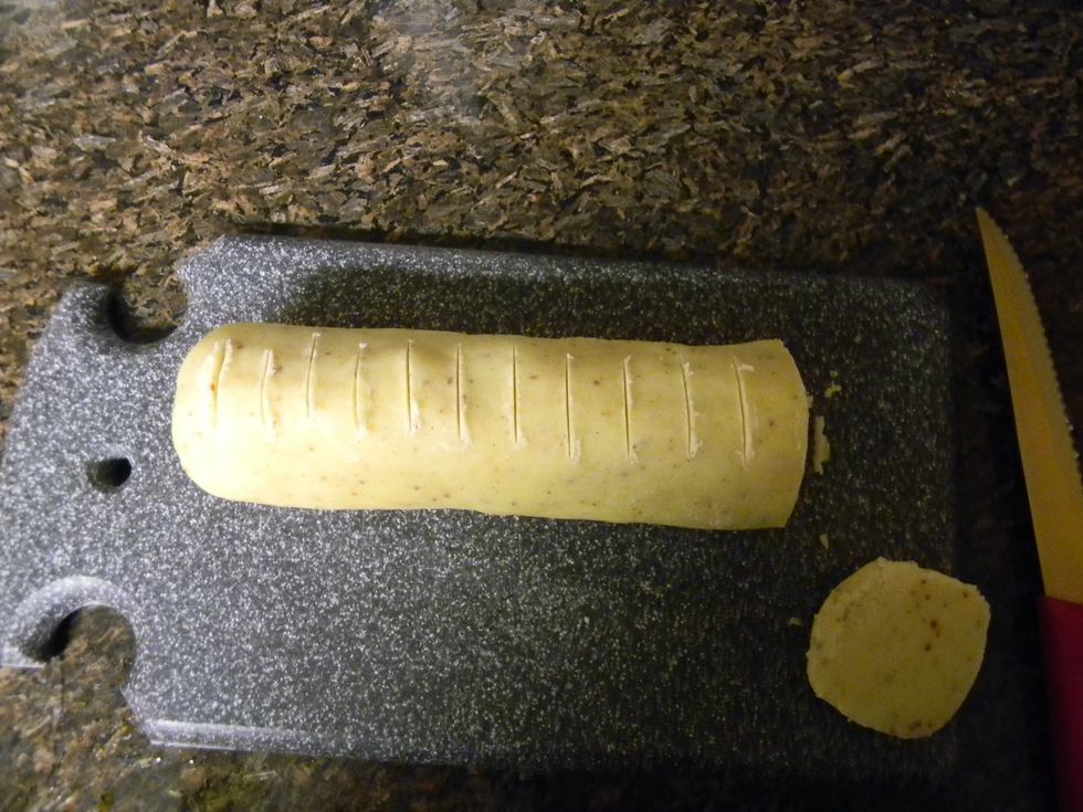 Cut them up and put each cookie about a finger-width apart from each other on an ungreased cookie sheet. I like to use parchment paper because it makes the cleaning easier, but it's not necessary.