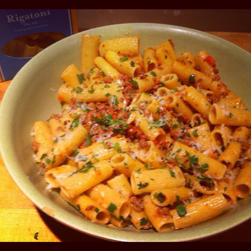 Sauce pasta with butter and Bolognese add in parsley and fresh Parmigianno. Serve to the family. Save remaining sauce for tomorrow. Peace JH