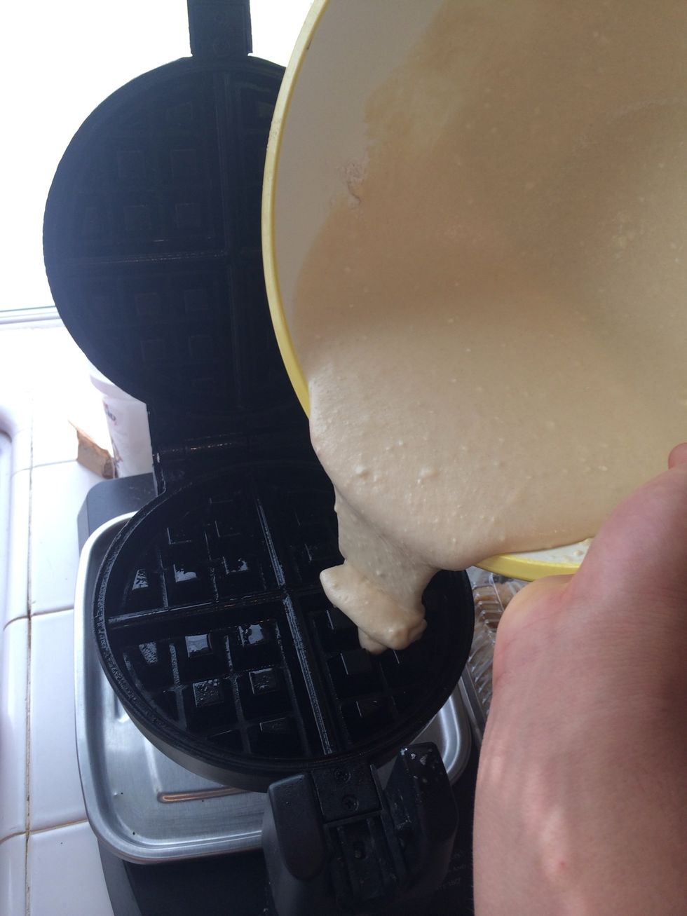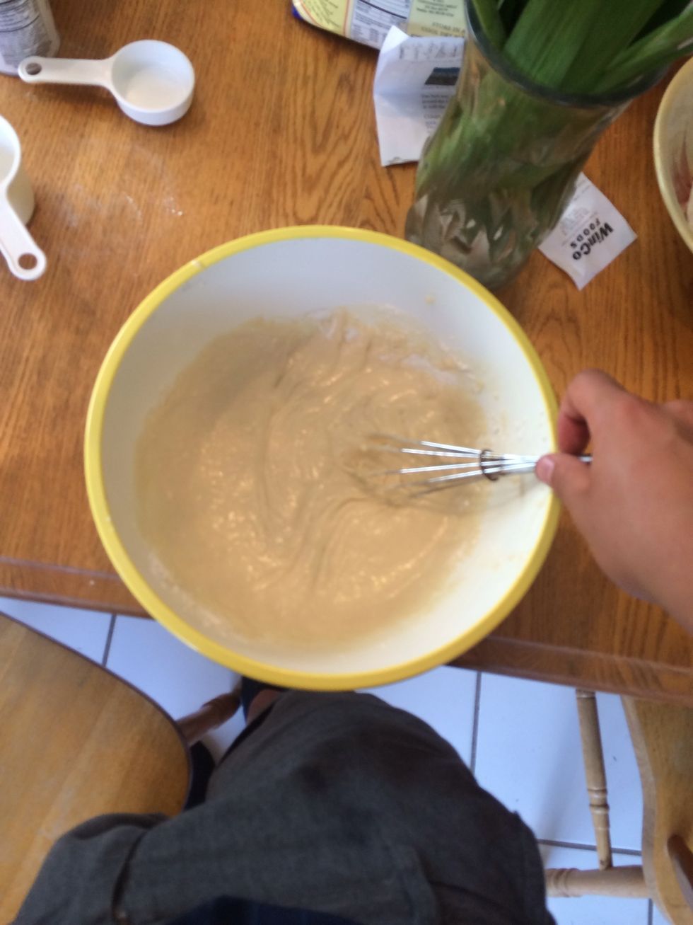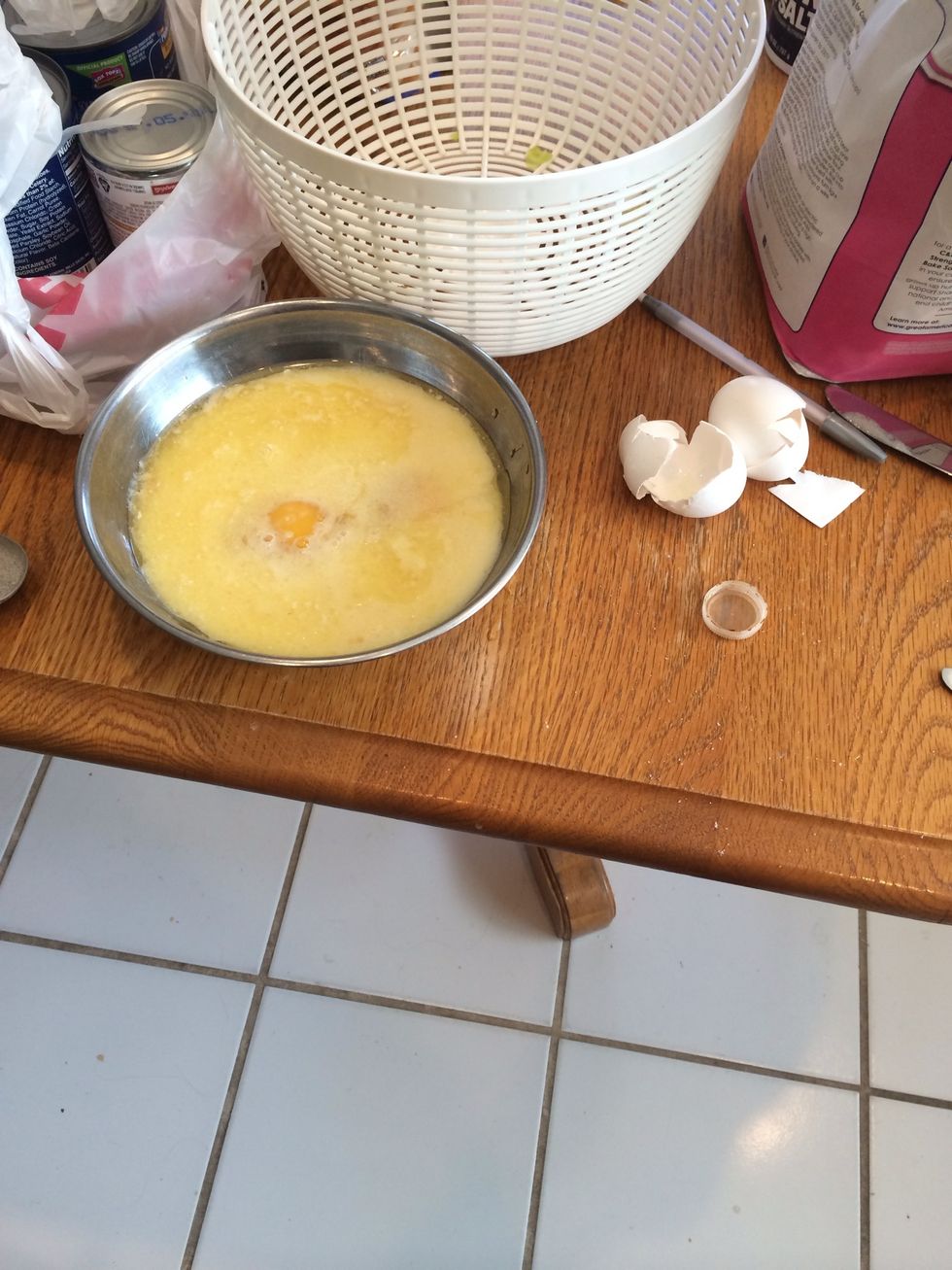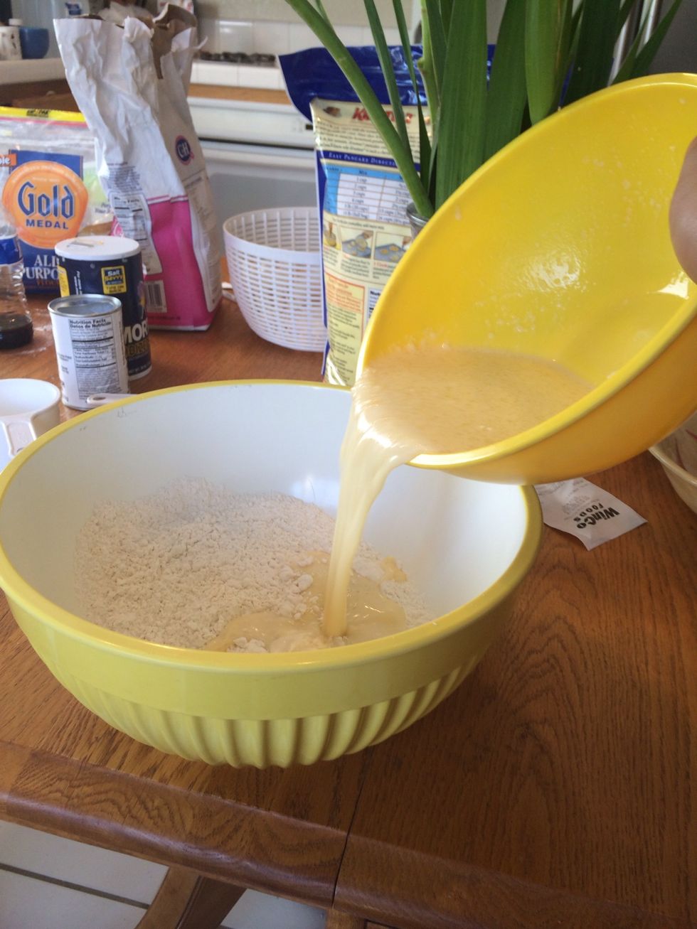 3. In separate bowl, beat the eggs. Stir the milk, butter and vanilla.