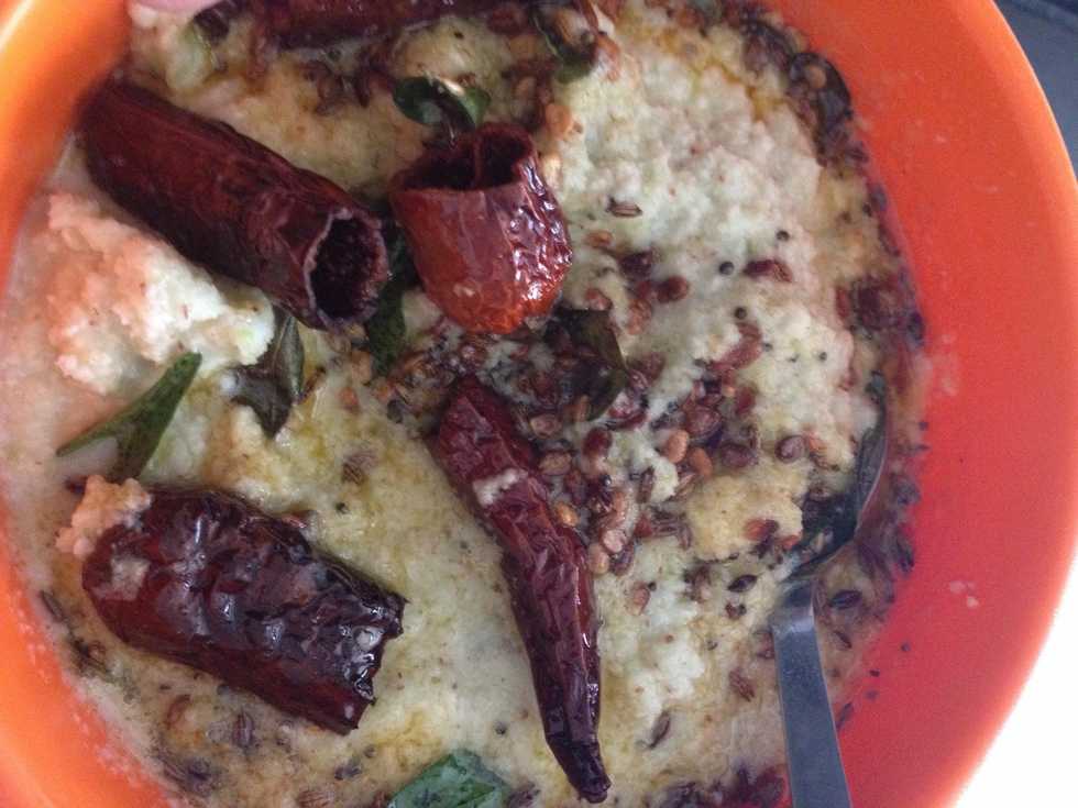 Add this to the ground coconut mix and its done. Can be served with many dishes like dosas, idlies and many south indian dishes.