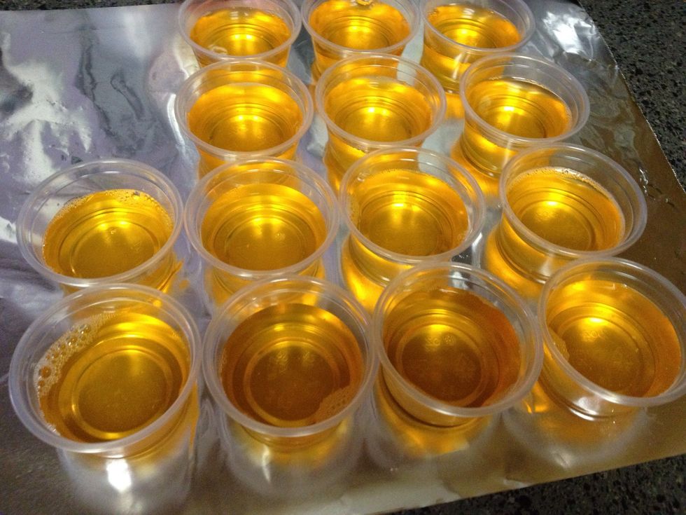 Yum! The recipe filled about 15 little cups. Also, I don't like mine very strong. If you do, change the alcohol/water ratio :) ENJOY!