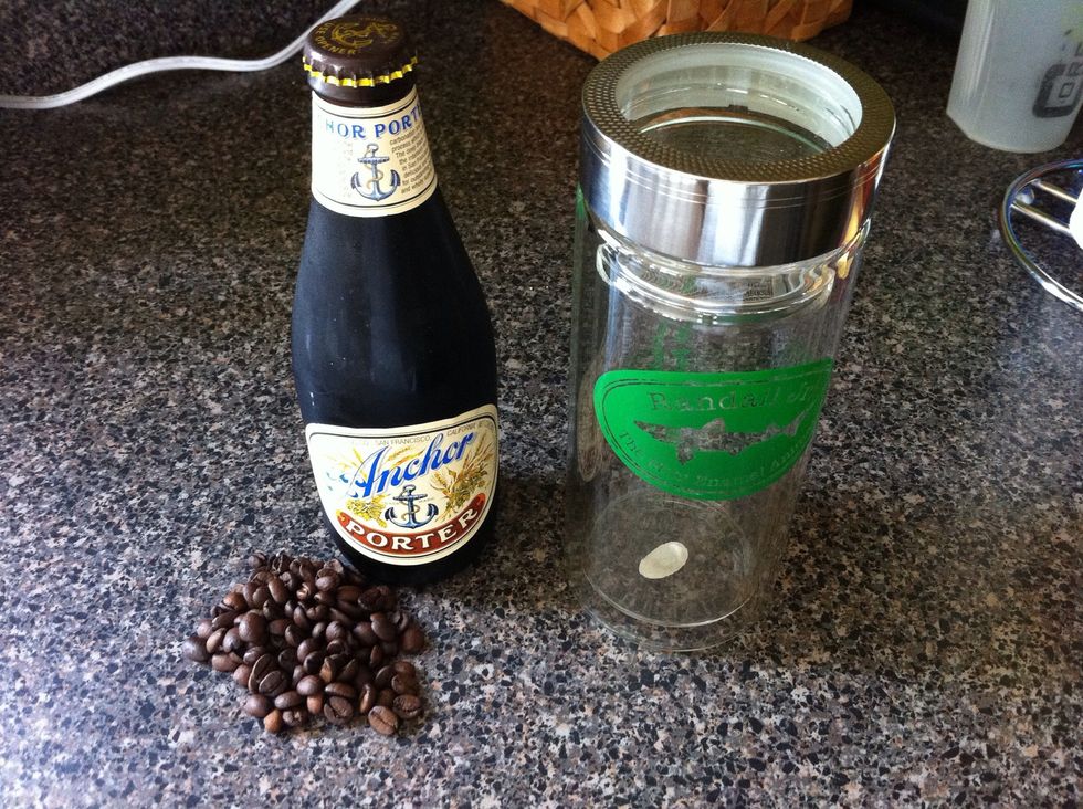 Start with a good dark beer, your favorite coffee beans and a Randall Jr. from Dogfishhead.