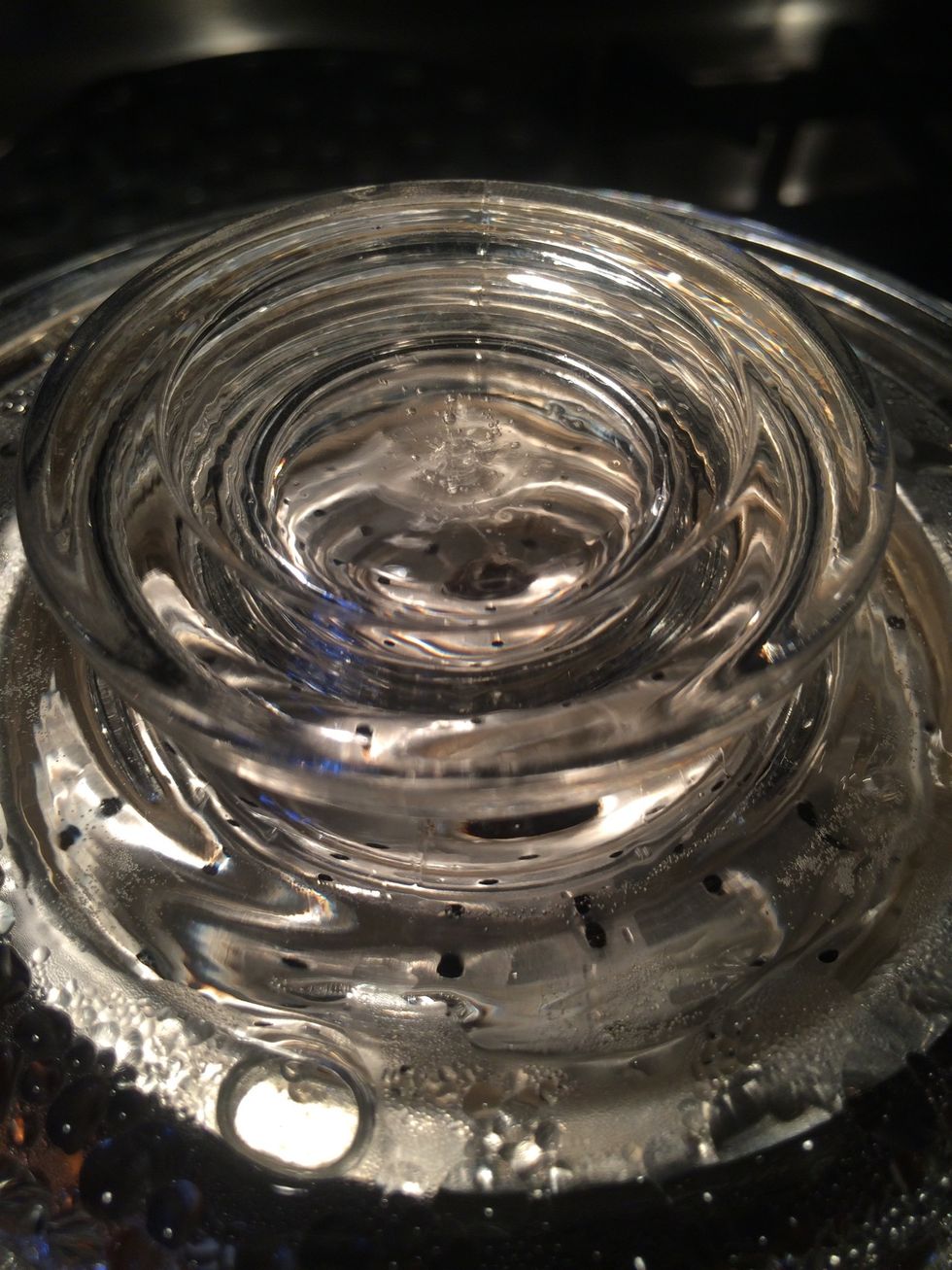 When the water starts to boil, it bubbles up through the tube and bubbles out over the diffuser and drips through the coffee beans.