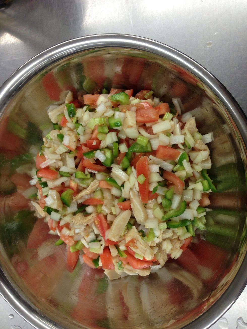 Celery, small dice and in the bowl! Add the rest of the ingredients and stir well let set over night! (We are acid cooking the conch) so no tasting yet!!!