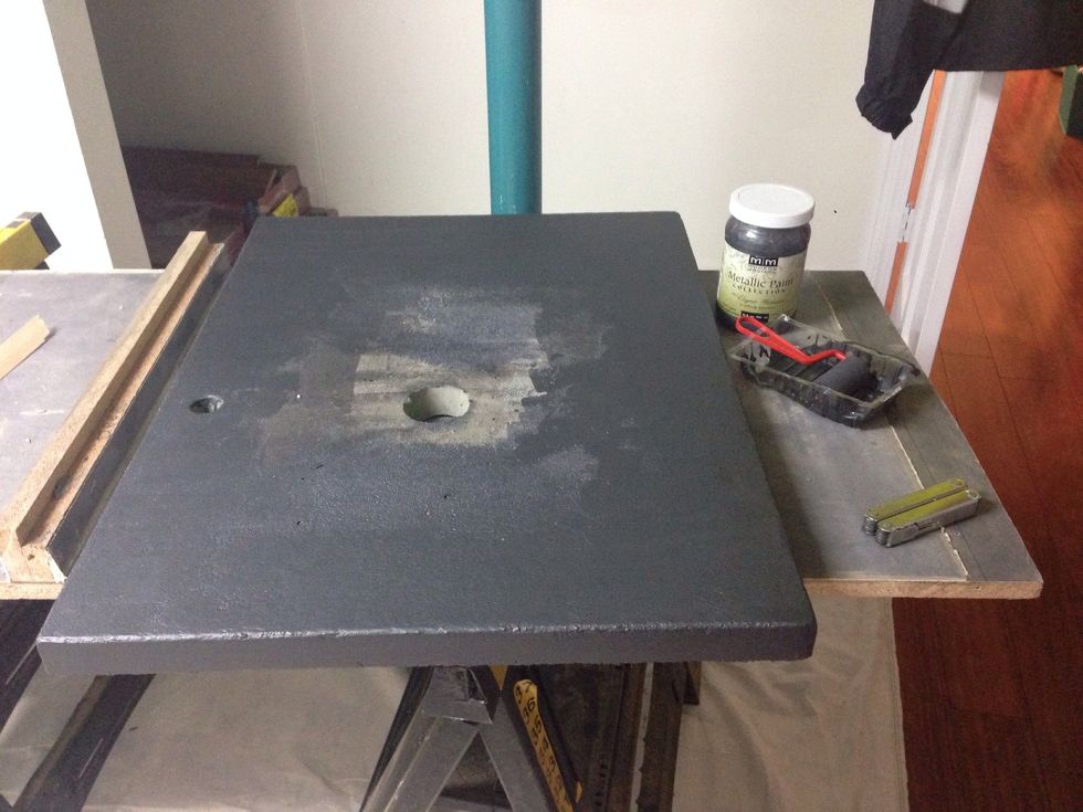 Once that has dried for several days you can pour the high gloss poxy coating on top and let set.
