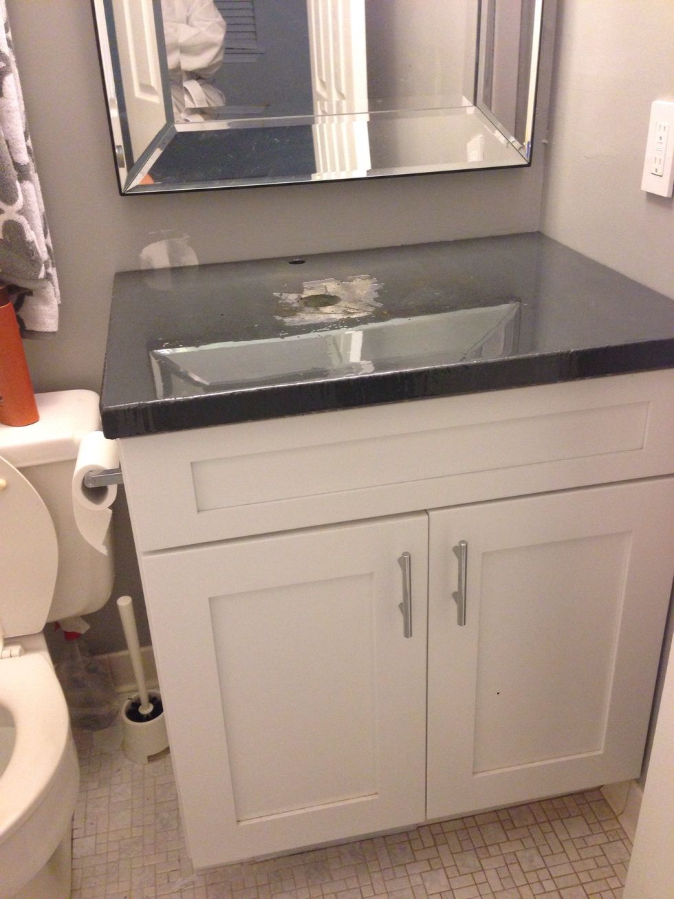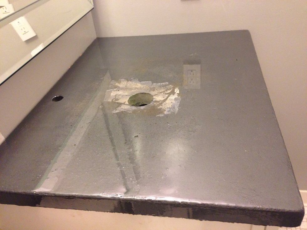 We used 3 coats of stain for our desired look. Don't worry about the center it will be covered by the sink.