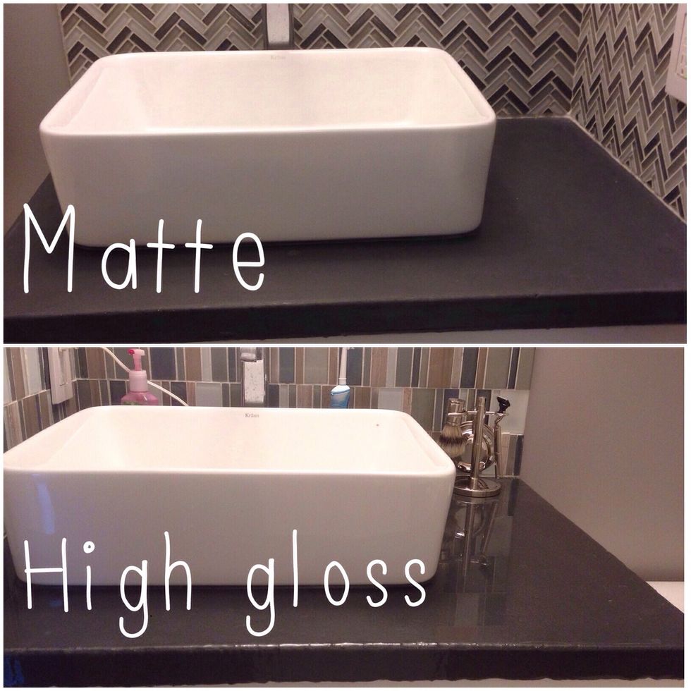 Update! We decided to use the palm sander to give the countertop a matte finish!