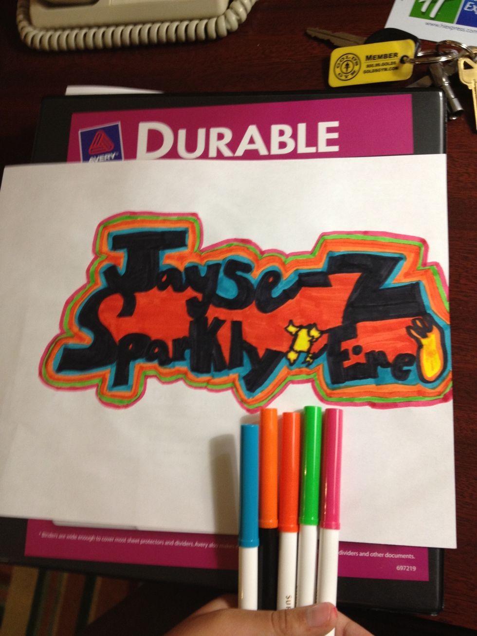 Draw something or a name with a pencil then go over it with sharpie you can color the inside with the sharpie or with regular markers but you have to outline the outside . Connect everything.