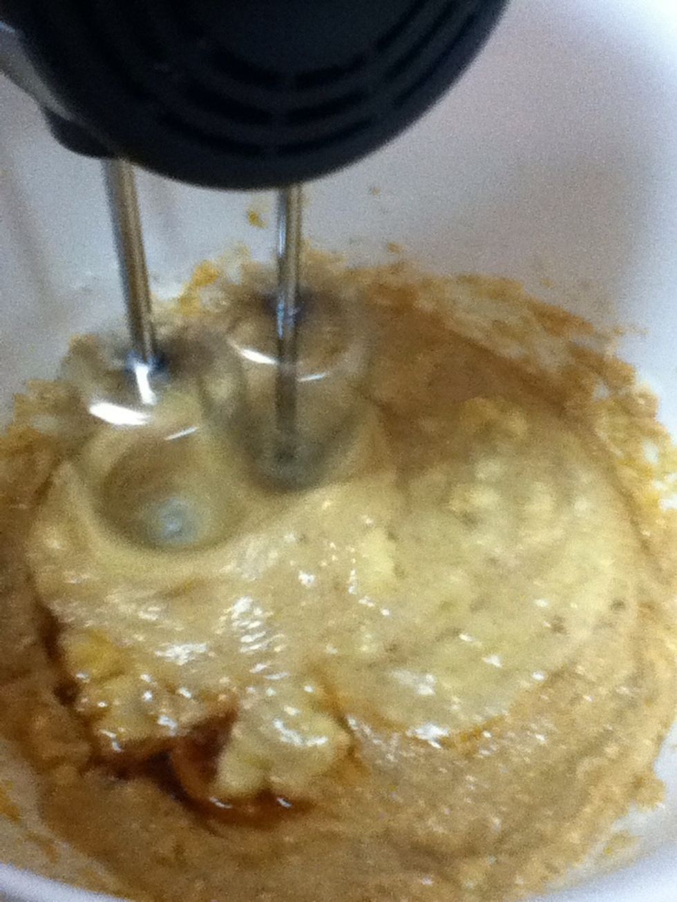 Once it is well blended, add in flour, baking soda and salt. Stir together.