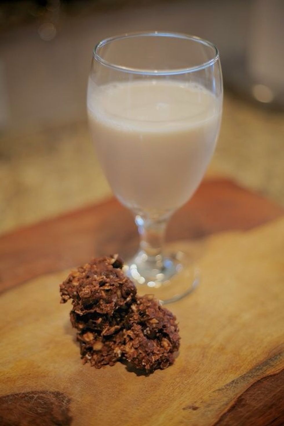 Add in the almond milk, whole wheat flour, and cocoa. Mix well.