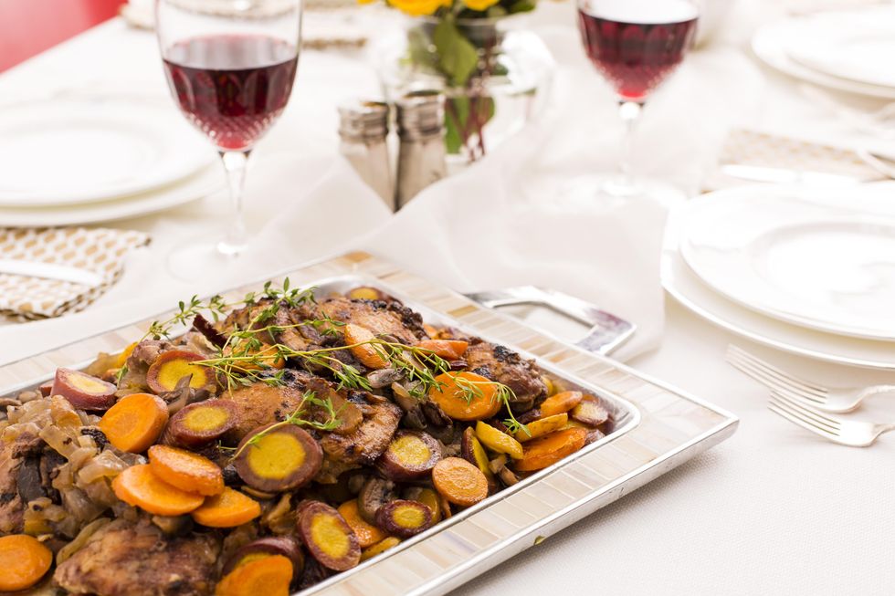 Today we’ve teamed up with PERDUE® Chicken to bring you a Downton-style dinner party. We’ve got a recipe for Coq au Vin and party-hosting tips the Earl of Grantham would applaud.