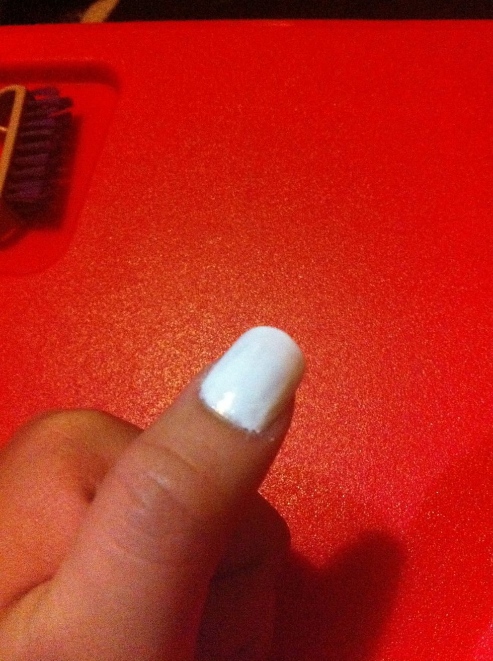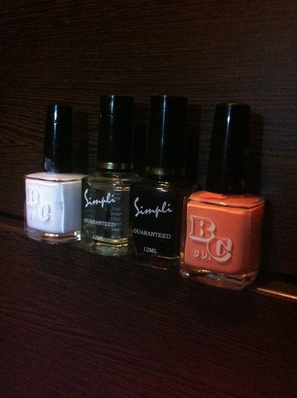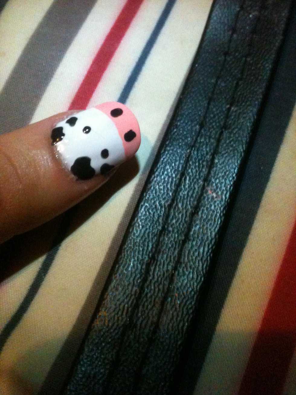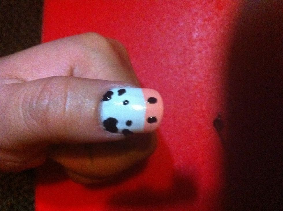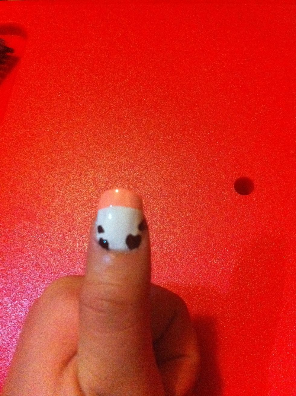 You will need: white,Black and pink or peach polish. You will also need a dotting tool. ( If you don't have a dotting tool, use a toothpick or a Bobbie pin