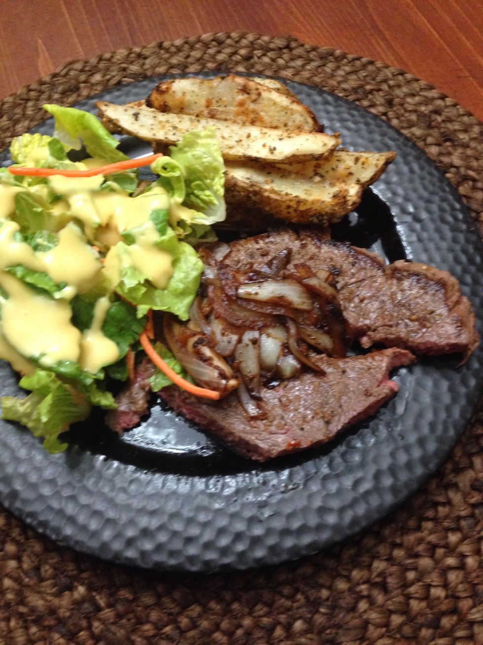 Steals were cooked on high heat for 3min on each side if you like medium done steaks. Let rest when done cooking