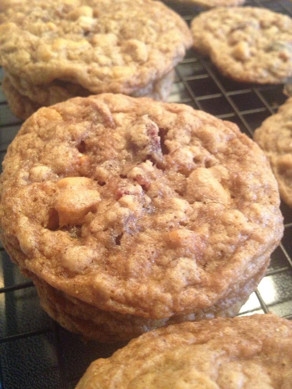 Toss onto mixed dough in mixing bowl cranberries, butterscotch chips, and oatmeal.