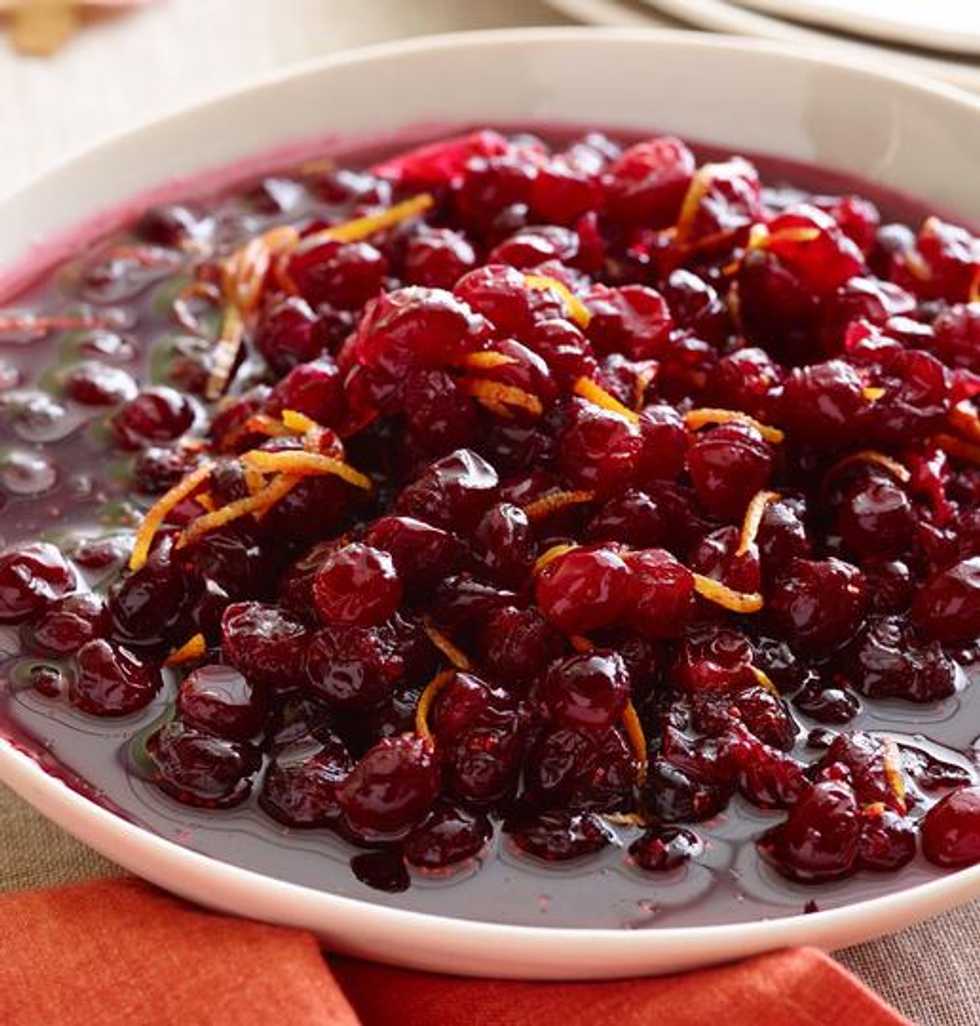 Combine and mix orange juice, orange zest, sugar and 3/4c water with the cranberries.