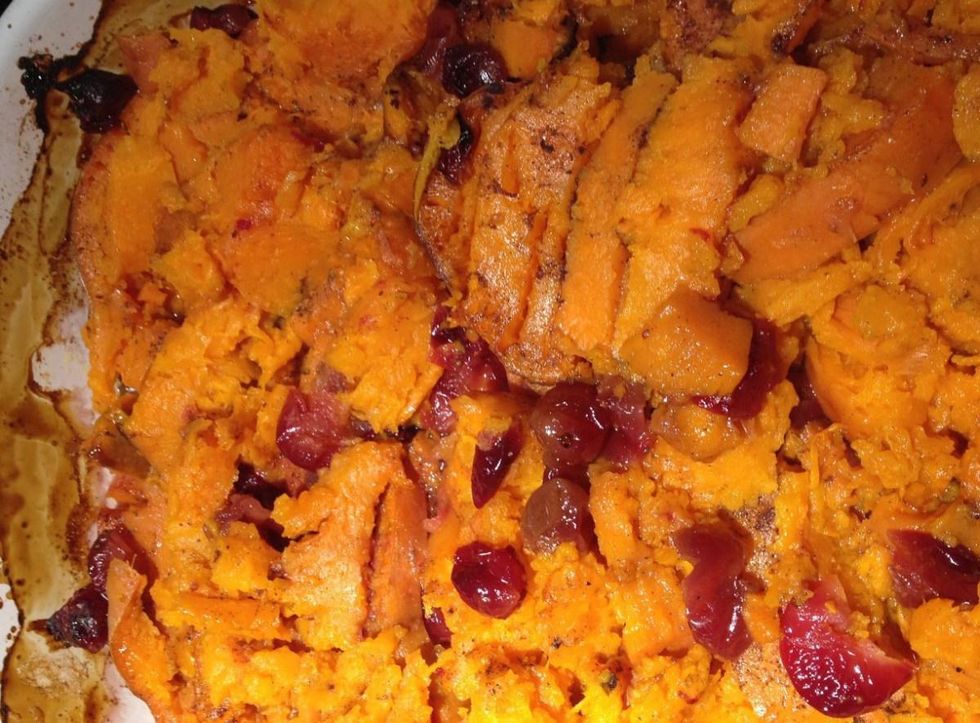 We had cranberry sweet potatoes with steamed kale and chicken sausages. It was delicious.