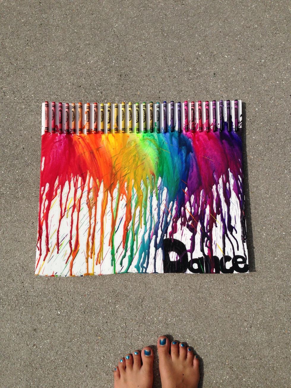 Start hot glueing your crayons at the top you can add a word at the bottom of the canvas if you want I did Dance on mine