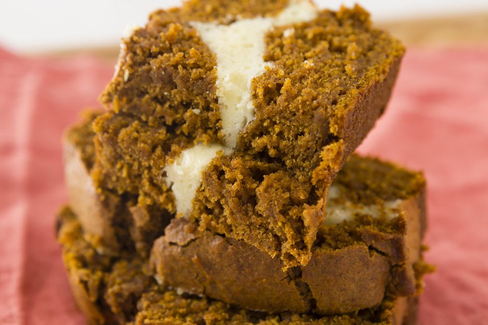 This recipe was inspired by: http://www.averiecooks.com/2014/08/cream-cheese-filled-pumpkin-bread.html