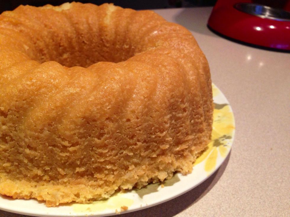 Bake for 55-70 minutes at 180 C until the cake is golden brown or until a toothpick inserted in the center just comes out clean.