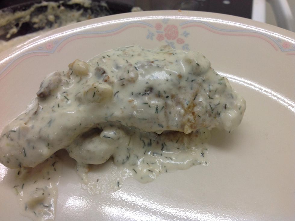 Getting browned and tender. Once the mushrooms are done, stir in the dill and remaining salt.