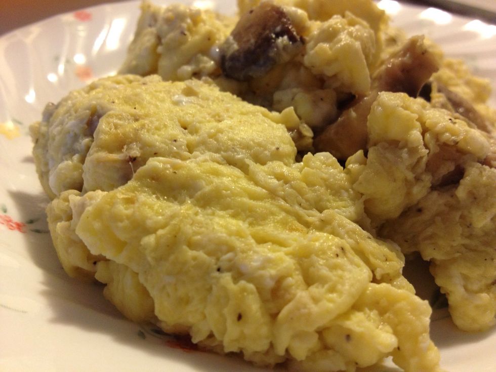 Add shrooms if using and sauté. Sautéing them first is sooo much better than adding them to the beaten eggs, and then cooking