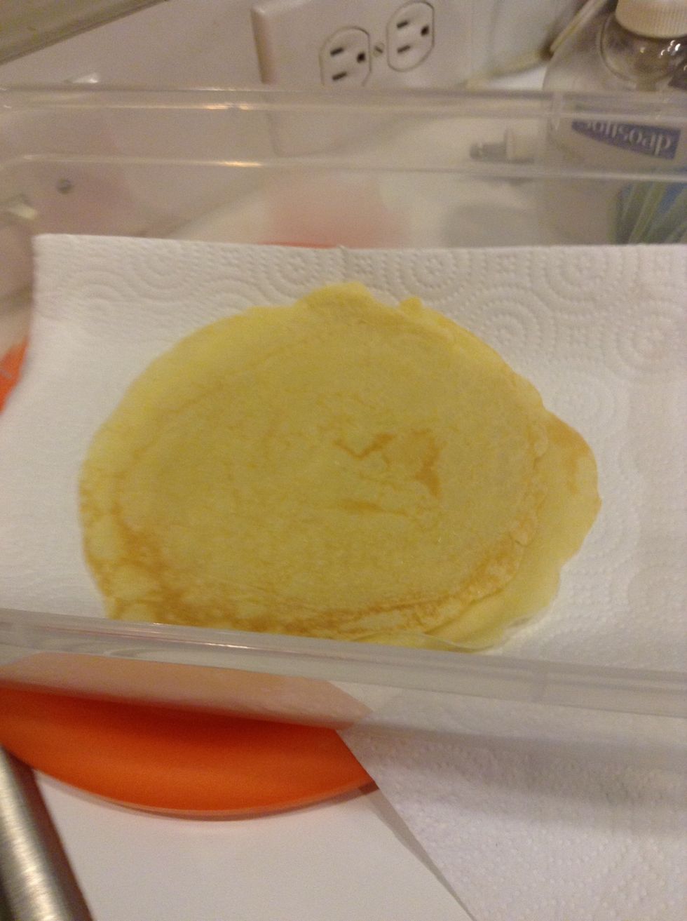 Cook the crepe for about 2 minutes, until the bottom is light brown. Loosen with a spatula, turn and cook the other side.