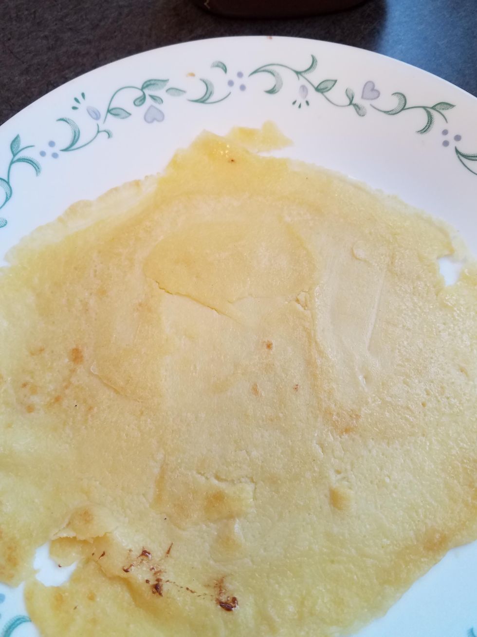 Pour mixture onto pan/griddle. Swoosh pan around to evenly coat it. Cook on each side till a very light brown