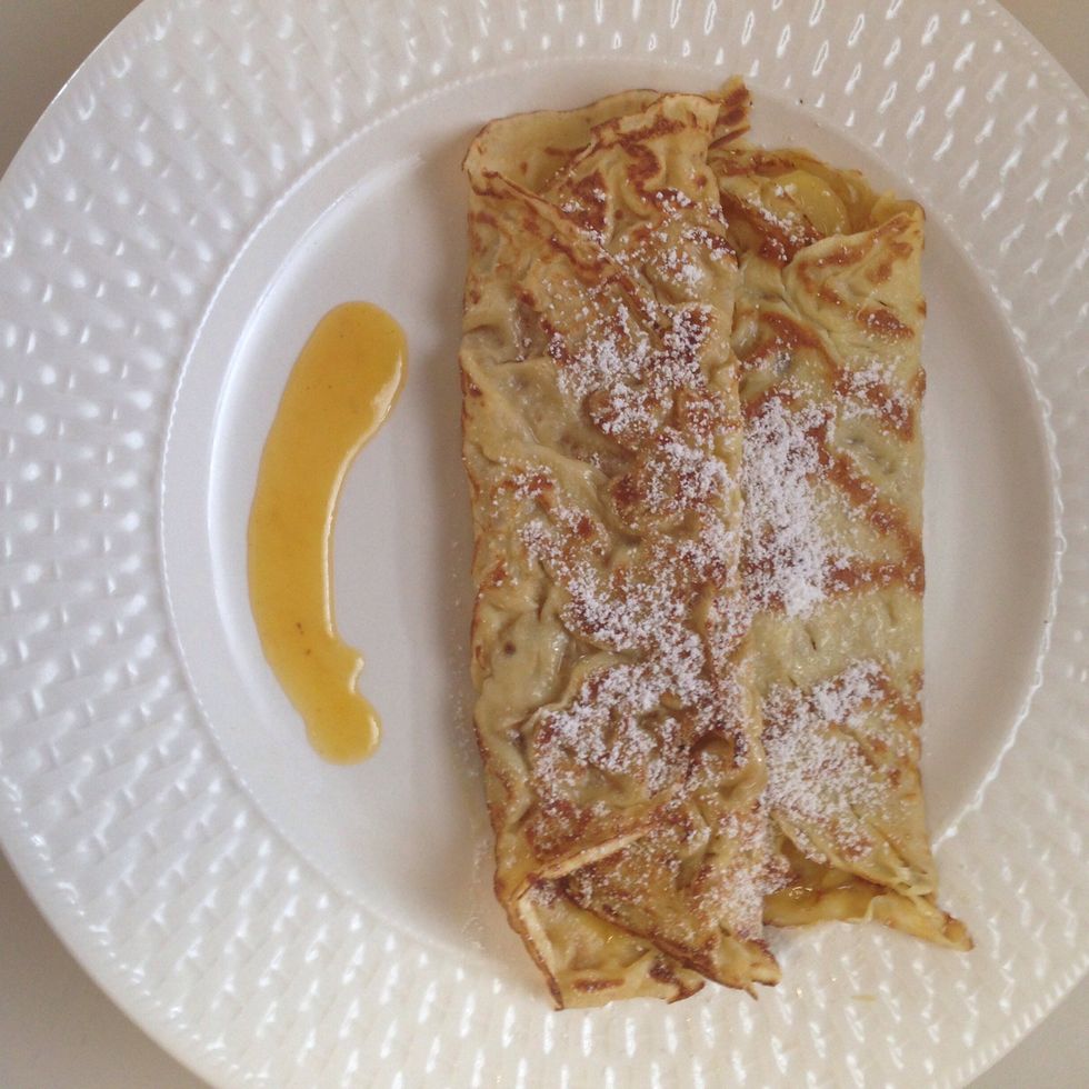 Dust the crepes with confectioners sugar and enjoy with the orange caramel sauce