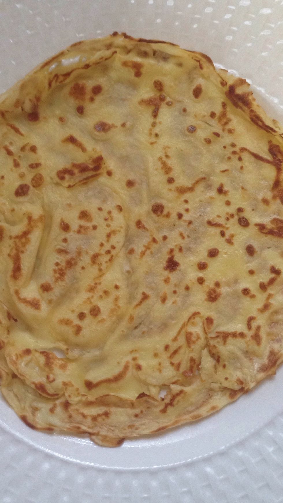 Pour 1/3 rd cup of crepe mixture in the center and rotate the pan to get a round shape